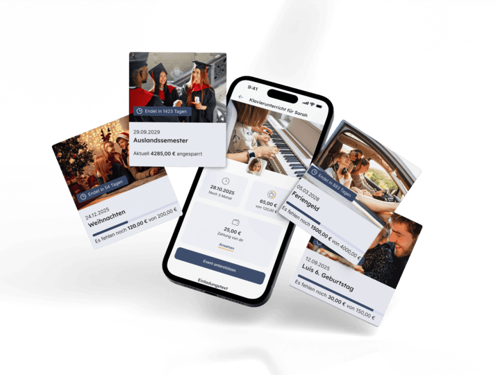 Ob monatlich bereits ab 20€ für die langfristige Vorsorge oder Spar-Events zu speziellen Anlässen, wie für Geburtstage, das erste Fahrrad oder zu Weihnachten. Gemeinsam mit Familie und Freund:innen mehr erreichen.